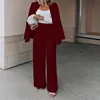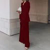 Traje de dos piezas para mujer, chaqueta de manga larga de Color sólido, pantalones ajustados, ropa profesional Simple, informal, invierno, 2021