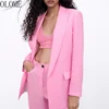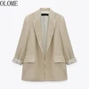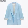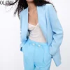 Blazer azul de manga larga para mujer, chaqueta elegante con hombros caídos, con bolsillos y solapa, para oficina, 2021