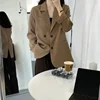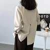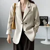 Blazer Beige con abertura en la espalda y botones para mujer, Top acolchado holgado con hombros descubiertos, abrigo de traje elegante de estilo de diseño