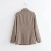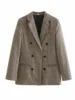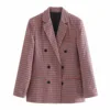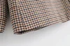 Chaqueta de cuadros con doble botonadura para mujer, traje informal Retro, chaqueta de manga larga con almohadilla para el hombro, abrigo de otoño