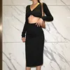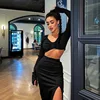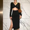 Vestido de dos piezas de manga larga para mujer, Top corto e inferior, liso, ajustado, para fiesta y Club, trajes sexys, nuevo de otoño 2021