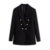 Blazer de Tweed con doble botonadura para mujer, chaqueta de manga larga, abrigos sólidos, prendas de vestir exteriores elegantes Za