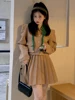 Conjunto de dos piezas de moda coreana para mujer, Tops de manga larga con cuello de solapa, minifalda plisada de cintura alta, conjuntos sólidos para mujer, Otoño, 2021