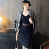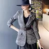 Dabuwawa Blazer ajustado con un solo botón para mujer, chaqueta informal a cuadros, elegante, para oficina, DO1CJK003