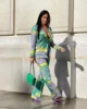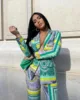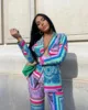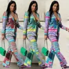 Conjunto de Chaqueta de manga larga y pantalones de tubo para mujer, traje informal de dos piezas con botones, estampado colorido, otoño