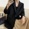 Chaqueta de traje holgada de manga larga para mujer, Blazer negro de gran tamaño, Color liso, primavera y otoño, 2021
