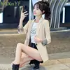Chaqueta de traje para mujer, abrigo elegante a cuadros finos, moda coreana, chaqueta informal de temperamento, ropa fina 2021