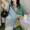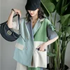 Blazers Women Short Sleeve Notched Patchwork Fashionable Leisure All match Summer Daily Blazer Elegant Korean Style New Clothing
