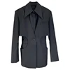 Blazer con muescas para mujer, abrigo con diseño de empalme laminado, cintura lateral, corte hueco, traje falso de dos piezas, Chaqueta corta para mujer, otoño 2022