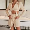 Blazer informal de negocios para mujer, conjunto de dos piezas, chaqueta ceñida a la cintura y cintura elástica, minifalda de tubo