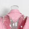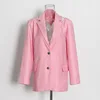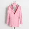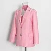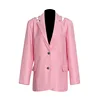 Blazer femenino Rosa elegante con cuentas y espalda descubierta para mujer, chaqueta de trabajo holgada con bolsillos de diseñador de un solo pecho