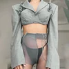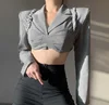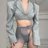 Traje pequeño con hombreras Y2K + tirantes plisados, traje Sexy de dos piezas de moda, diseño único, traje elegante de oficina para mujer