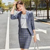 Boliyae Conjunto de 2 piezas de traje de trabajo para mujer, falda de negocios, chaqueta a cuadros, Blazer para oficina, Formal OL