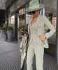 Conjuntos de 3 piezas de traje verde para mujer, Blazer de manga larga a la medida, pantalones de botonadura única, traje informal Formal de diseñador de oficina