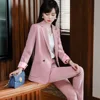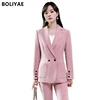 Boliye Topping Conjunto de pantalón de trabajo para mujer, traje de 2 piezas para entrevista de negocios, chaqueta, uniforme, Blazer para oficina, Formal OL