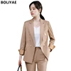 Chaqueta Blazer para mujer, traje informal a la moda, ropa de oficina de dos piezas, elegante, a rayas, pantalones, primavera y otoño