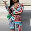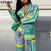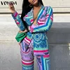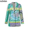 VONDA Chaqueta de manga larga con cuello de solapa para mujer, abrigo elegante para oficina, estampado, Primavera