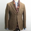 Blazer de una pieza para hombre, chaqueta Formal de lana de doble botonadura con solapa, para negocios, graduación, esmoquin, patrón de boda, color marrón