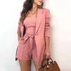 Conjuntos de 3 piezas de Blazer y pantalón corto para mujer, trajes de oficina con lazo liso, Tops cortos por debajo de la cintura, moda elegante de verano, novedad de 2022