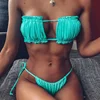 Bikini plisado de Bandeau para mujer, traje de baño Sexy para mujer, conjunto de Bikini de playa de arena con Tanga, ropa de playa para mujer 2021