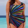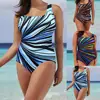 Bañador sexy sin mangas de una pieza, traje de baño de una pieza con estampado a rayas, Bikini