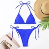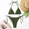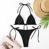 Bikini brasileño de dos piezas para mujer, de dos piezas con espalda descubierta traje de baño, estilo vendaje, unicolor, ropa de playa, 2021