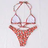 Bikini con estampado Floral para mujer, bañador con cordón, conjunto de Bikini de corte alto, traje de baño para mujer, Bikinis de cintura alta para playa 2021
