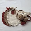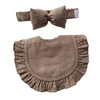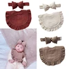 Conjunto de babero y Diadema con lazo para bebé, 2 piezas, volantes de Color sólido, toalla de Saliva para recién nacido, paños para eructar, banda para el cabello, bata de alimentación