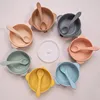 Cuenco de silicona Multicolor para suplemento alimenticio para bebé, cuchara suave, plato de silicona, vajilla para autocomer para niños