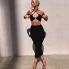 Cryptographic Top sin mangas con cuello Halter y faldas para mujer, conjunto de dos piezas, trajes de fiesta para discoteca, Top corto con cordones, conjunto a juego