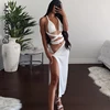 Cryptographic Conjunto de 2 piezas de Bandage para mujer, conjunto Sexy blanco con cordón, fruncido, sin mangas, falda dividida para fiesta, conjunto a juego