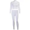 Chándal Sexy de cuello redondo para mujer, conjunto de dos piezas, Tops cortos de manga larga y pantalones largos ajustados, trajes de 2 piezas para Otoño e Invierno
