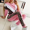 Chándal de dos piezas con estampado de leopardo para mujer, Conjunto de sudadera y pantalones para correr, ropa deportiva femenina, Primavera