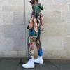 Sudadera con capucha y pantalones de correr para mujer, conjunto de dos piezas con estampado de calle, pana