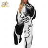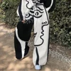 Conjunto de sudadera holgada con estampado para mujer, chándal elegante de dos piezas, pantalones informales y negros y blancos