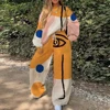 Chándal con estampado para mujer, Top de manga larga, pantalones largos de cintura elástica, conjunto de dos piezas, trajes deportivos informales