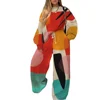 Conjunto de chándal informal con estampado para mujer, sudadera con cuello redondo y pantalones de chándal con cordón ajustable, ropa de estar por casa, 2 piezas