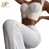 Conjunto de Top corto blanco de 2 piezas para mujer, camiseta sin mangas y pantalones de pierna ancha, informal, liso