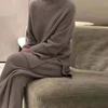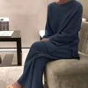 Chándal de punto para mujer, Conjunto de jersey y pantalones elásticos, cuello redondo, Color sólido, invierno, primavera