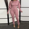 Conjuntos de dos piezas para mujer, Tops de manga larga y pantalones ajustados, conjuntos a juego, chándal de Color sólido a la moda, conjuntos para mujer