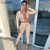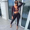 Cutenew Conjunto de dos piezas con cuello en V para mujer, Tops cortos ajustados y pantalones elásticos, ropa de calle informal a la moda, Sexy, primavera 2021