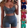 Conjunto de 2 piezas de algodón para mujer, Top corto con cuello en V, sin mangas, moda de verano, 2020