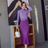 Conjunto de 2 piezas para mujer, suéter femenino, Tops + falda, moda de punto, manga larga, novedad de otoño
