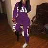 Chándal de talla grande para mujer, conjunto informal de dos piezas, pantalones largos transpirables, conjunto de Top rosa con letras trenzadas, Azul, Morado, rojo y negro