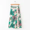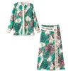 Traje de pijama para mujer, traje de moda, camisa Bohemia romántica estampada + posicionamiento, color a juego, falda de media longitud, dos piezas
