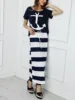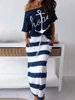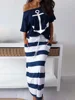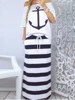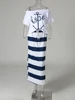 Conjunto de dos piezas de talla grande para mujer, Camiseta con estampado de ancla de barco y falda Maxi a rayas, elegante, vacaciones, verano 2020