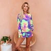 Camiseta de manga larga con cuello de barco para mujer, pantalones cortos con cordón, traje de dos piezas para mujer, chándal informal de otoño