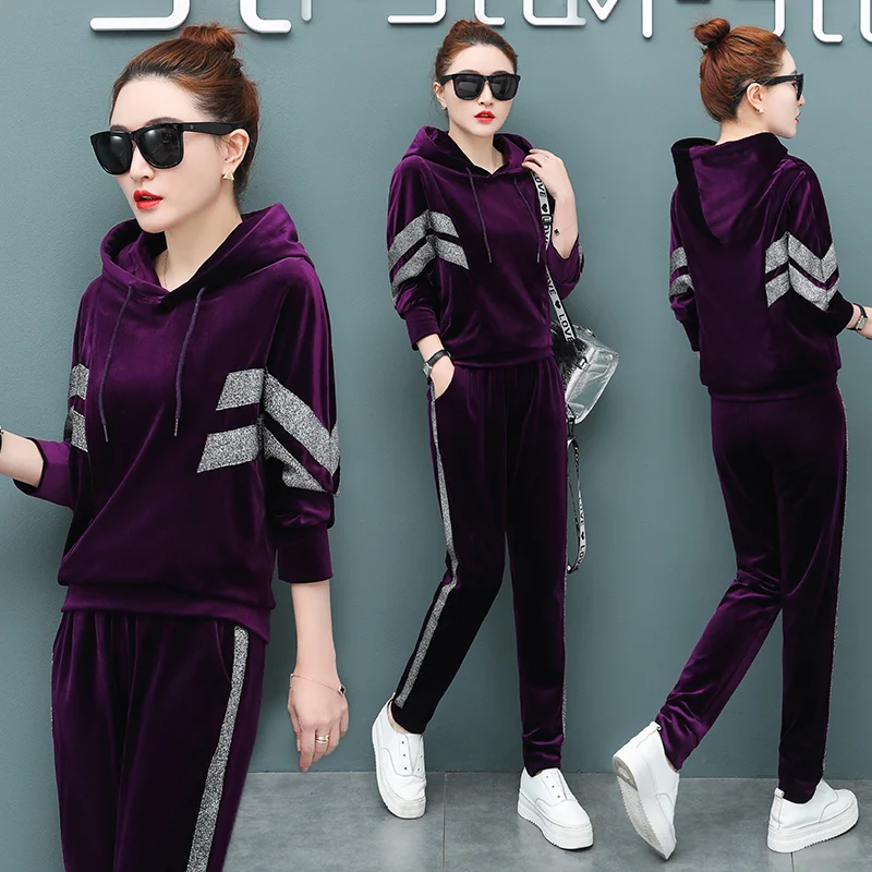 Sudadera con capucha de talla grande para mujer, conjunto de ropa de moda coreana, pantalones de salón, conjunto de 2 piezas, invierno, 2020