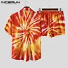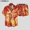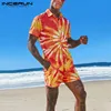 INCERUN Conjunto de ropa informal Hawaiana para hombre, camisetas de manga corta con solapa, pantalones cortos con bolsillos elásticos, 5XL, verano, 2021