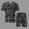 Conjunto deportivo informal de verano para hombres y mujeres, camiseta y pantalones cortos con estampado de grafiti, a juego, 5XL